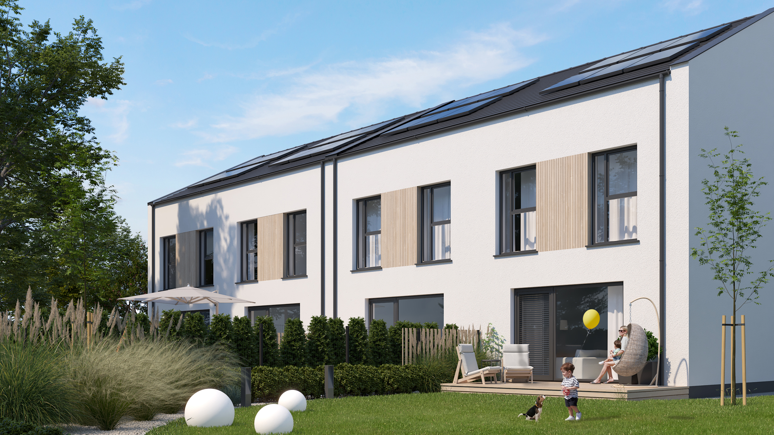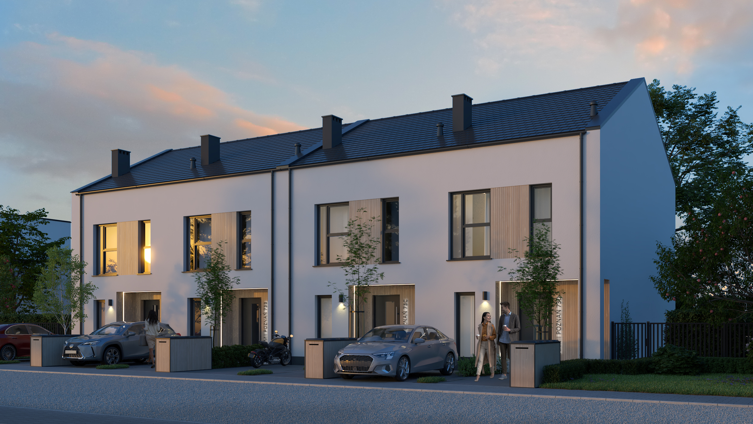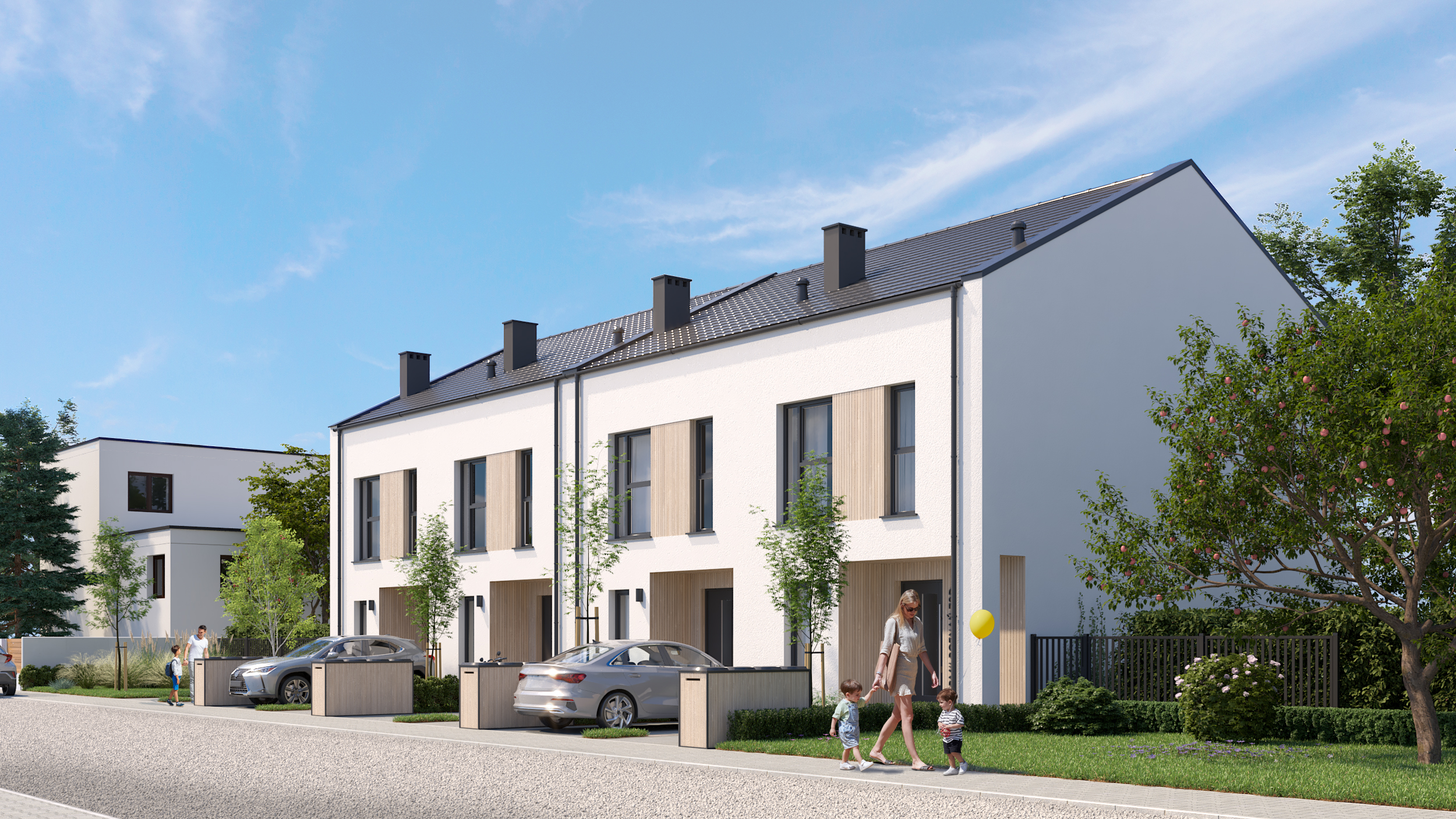 Kameralna zabudowa szeregowa składająca się z czterech lokali mieszkalnych z ogrodami, położona w otoczeniu zieleni i w sąsiedztwie licznych terenów rekreacyjnych. To idealne miejsce dla osób ceniących spokój i codzienny kontakt z naturą, a jednocześnie oczekujących szybkiego i wygodnego dojazdu do centrum miasta.